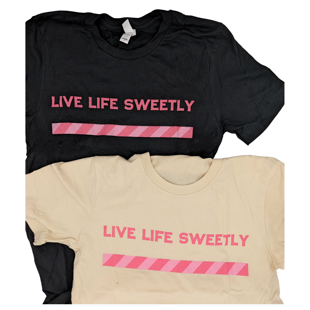 Although not edible... still a sweet gift. Spread joy and the reminder to "Live Life Sweetly" with this Aglamesis T-shirt